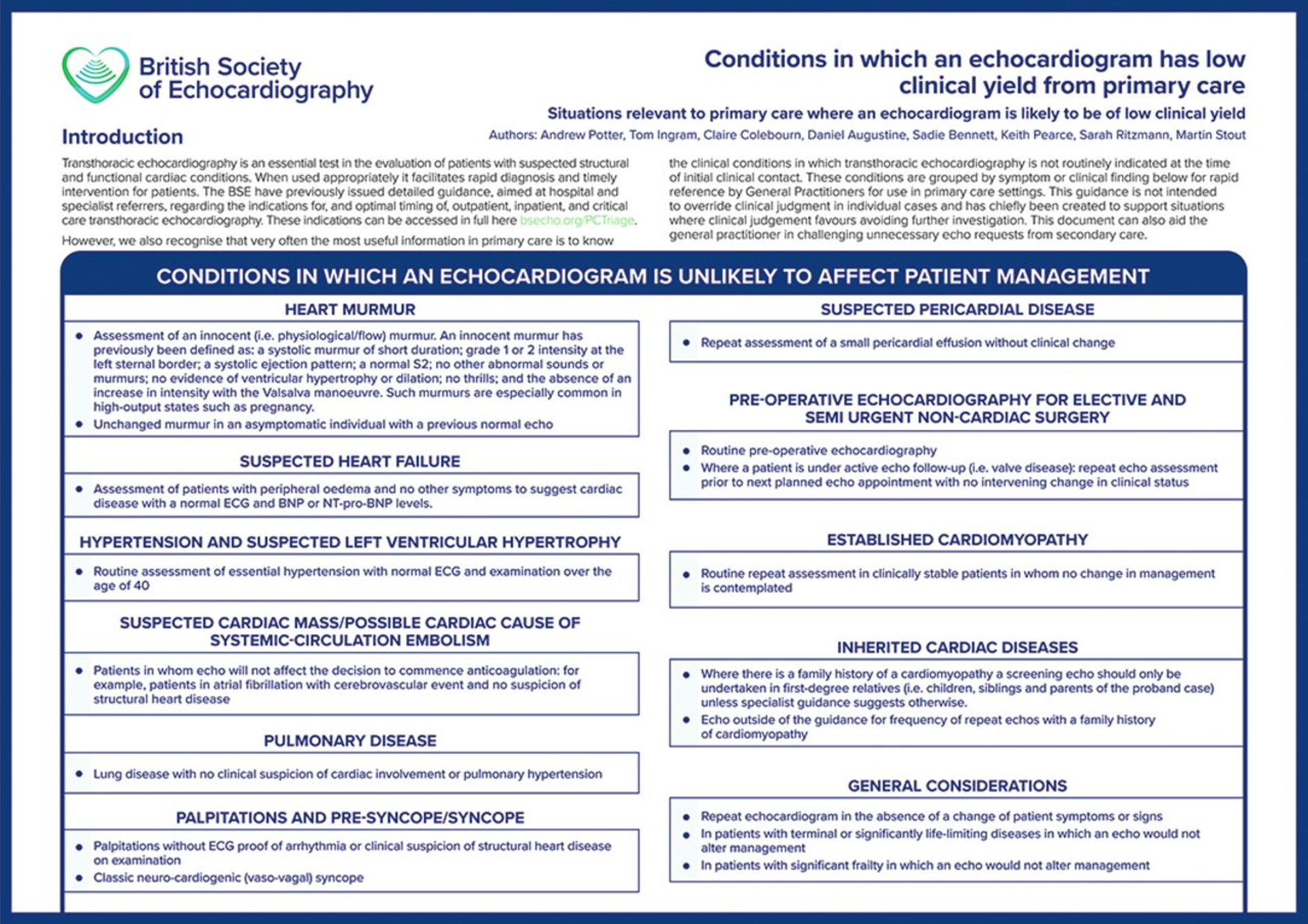 - in the absence of a significant cardiac history, and with a normal physical examination and 12-lead electrocardiogram (ECG), then the presence of simple cardiomegaly (without pulmonary congestion or other findings suggestive of cardiac disease) on a chest X-ray does not warrant an echocardiogram as the likely yield of identifying significant cardiac pathology is low